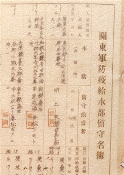 《关东军防疫给水部留守名簿》(局部)。